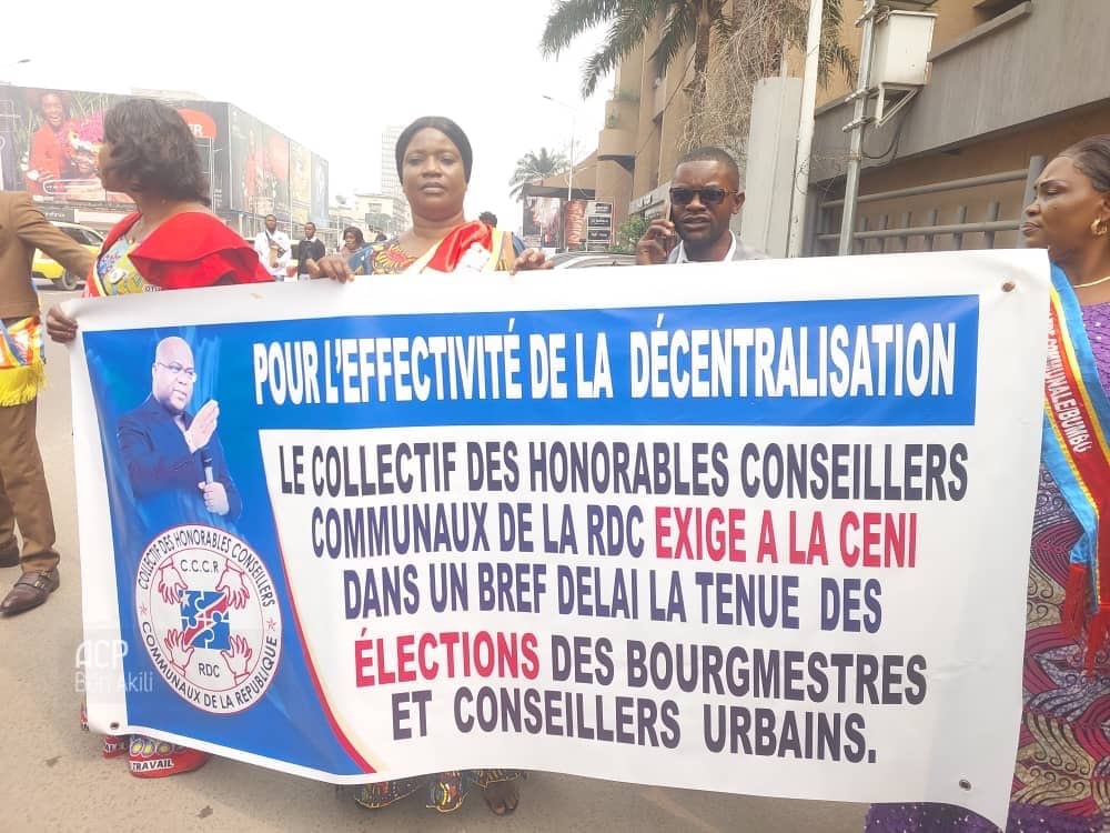 Les Conseillers communaux étaient en sit-in jeudi devant le siège de la Commission électorale nationale indépendante (CENI), sur le boulevard du 30 juin dans la commune de Gombe, nord de la capitale Kinshasa, pour réclamer l’organisation des élections des Bourgmestres et Conseillers urbains en République démocratique du Congo.
