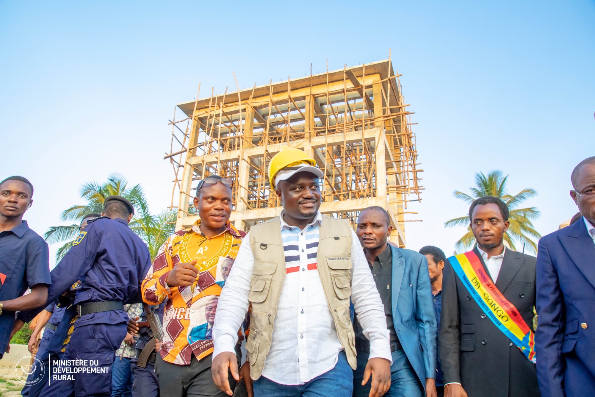 Le Ministre d’État Muhindo Nzangi Butondo en visite d’inspection des travaux du Projet PRISE à Lusambo, Sankuru